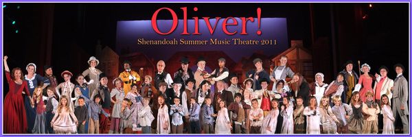 Actors are photographed in costume and composited into dramatic, themed layouts for plays or musical productions.